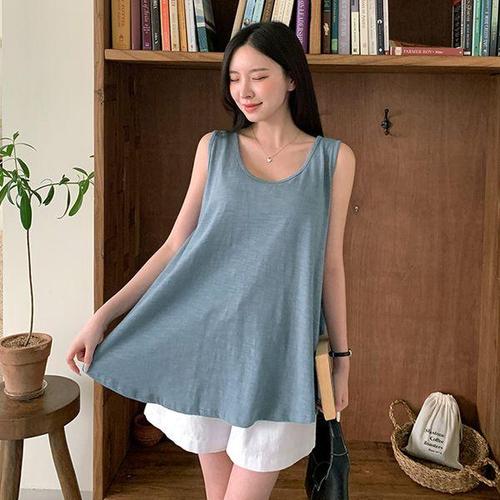 [유야]슬라브 유넥 플레어 롱 나시 이너 훌 민소매 -SL0015H- 빅사이즈 루즈핏 여성 봄 여름