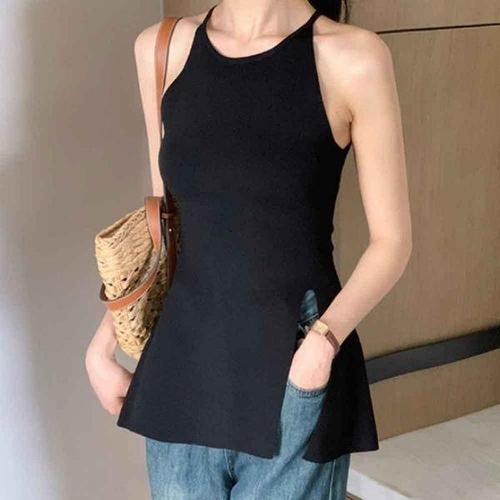 [에이치플러스몰]홀터넥 롱 나시 옆트임 여름 슬림핏 이너 슬리브리스