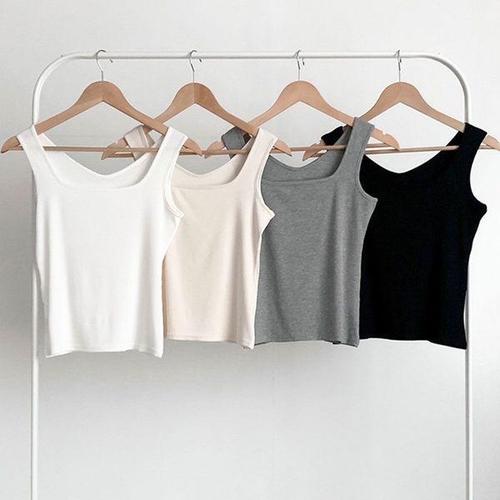 몸에 딱맞는 슬림핏 여름 봄가을 이너 크롭 민소매티
