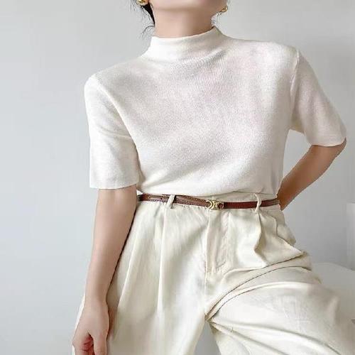 [셀러허브_여성트랜드패션]ONM 여성 반팔 니트 티셔츠 핏 데일리 이너 심플