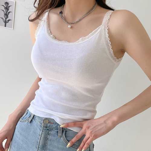 레이스 후라이스 끈 나시 여성 탑 이너티 U넥 면100