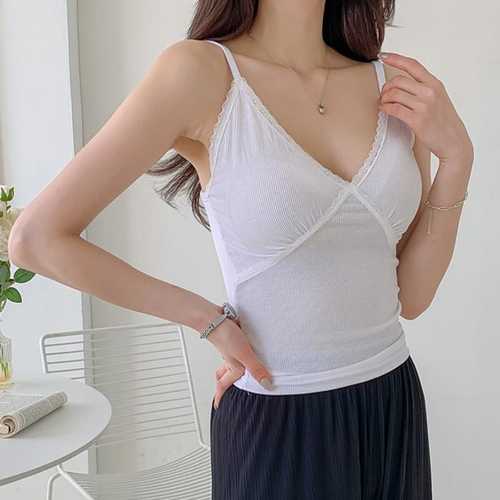 여성 골지 캡나시 레이스 프릴 끈나시 이너웨어 이너탑 속옷 나시티