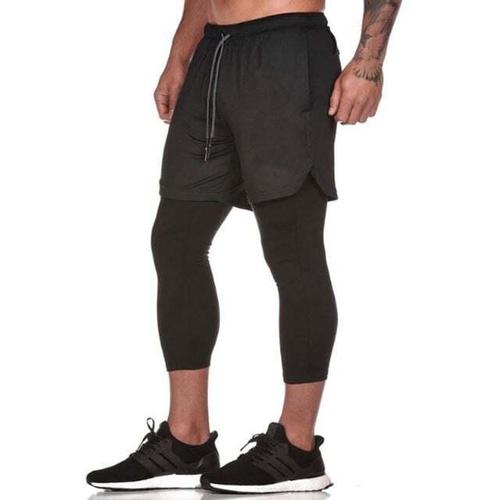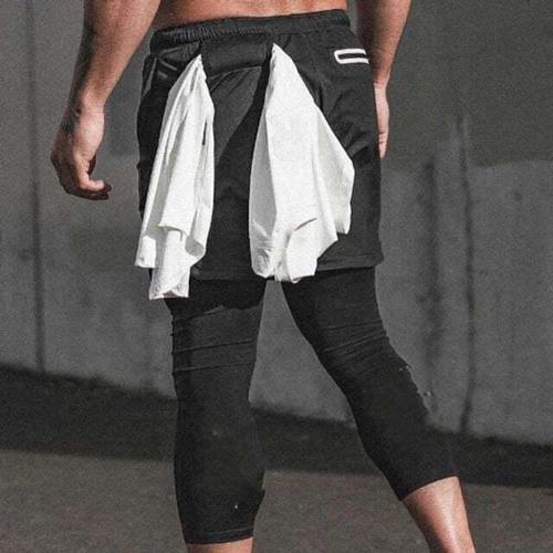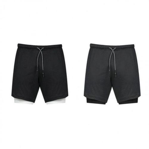 차쿠 남성 마라톤 반바지 투피스 이중 반바지 속타이즈 조깅 런닝 달리기 반바지 휴대폰 포켓 수납