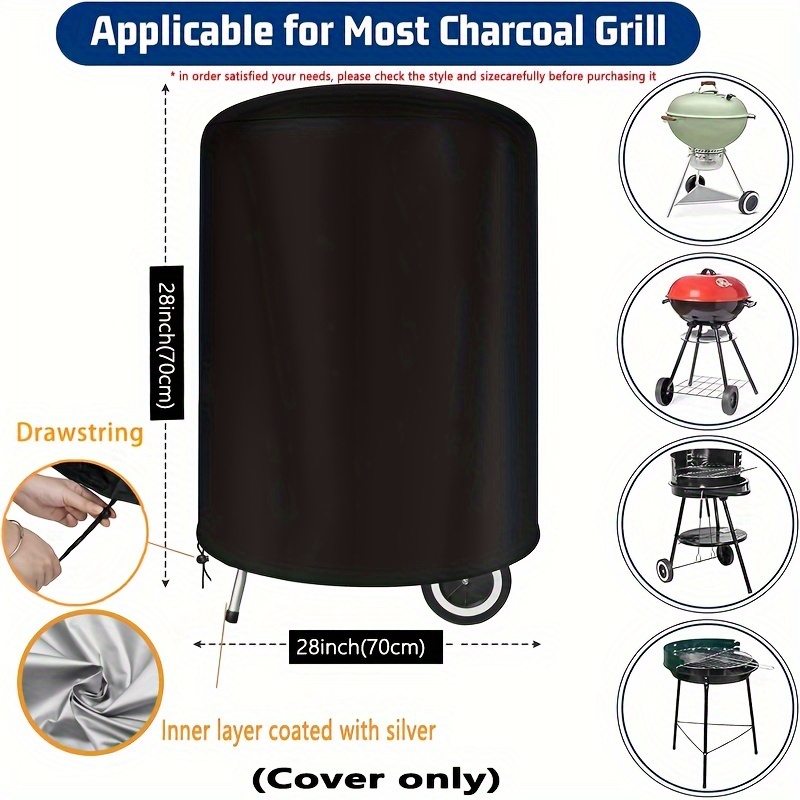 TEMU 튼튼한 210D 원형 바베큐 그릴 커버, 찢김 방지 및 UV 보호 기능으로 설계되었으며, 28인치 회색 및 검정색 스킴으로 야외 그릴을 보호합니다.