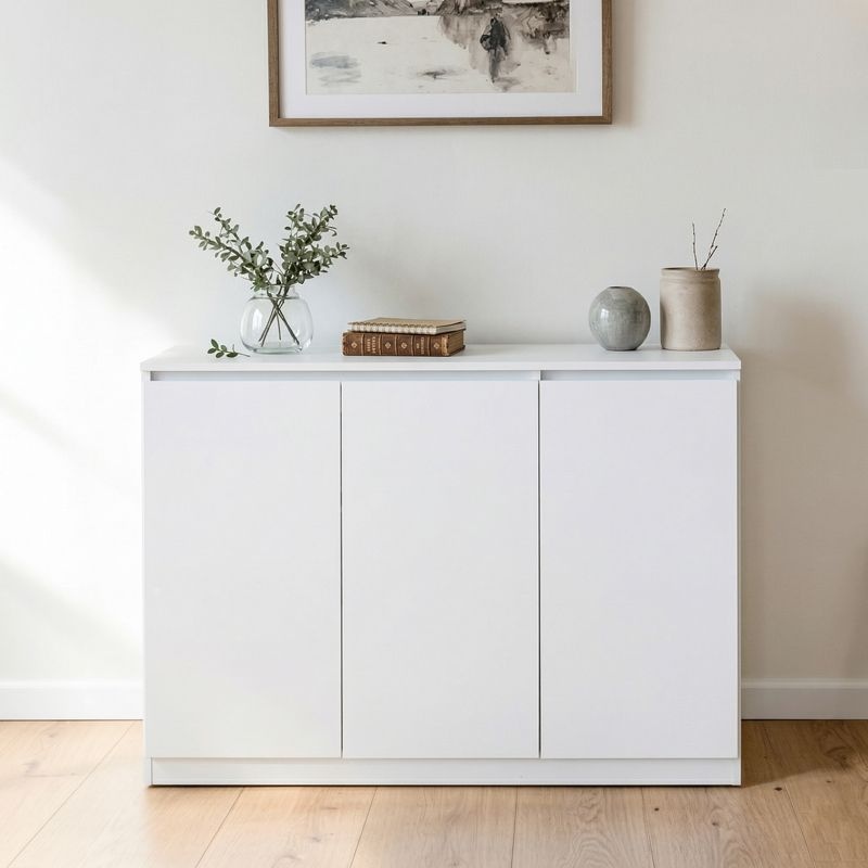 화이트 낮은 이불 수납장 3칸 광폭 도어 거실장