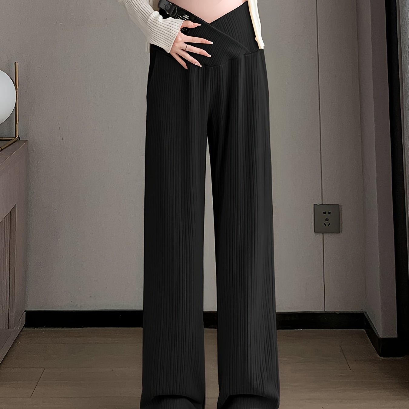 TEMU 봄/여름용 임산부 바지, 얇은 로우라이즈 스트레이트핏 와이드 레그 패션 복부 지지 캐주얼 롱팬츠|임부복