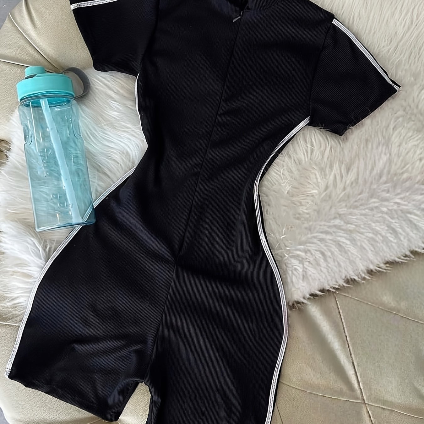 TEMU 사계절용 점프수트, 하이넥 슬림핏 컬러 블록 점프수트, 캐주얼하고 우아함, Y2K 스타일, 외출, 휴가, 파티, 소셜 모임에 적합, 여성 의류