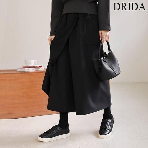 [드리다]여성 겨울 이중 기모 와이드 빅사이즈 랩바지 치마바지 밴딩 팬츠 40-50대 미시 중년여성 엄마옷