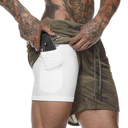 남성용 2 in 1 이중 레이어 스포츠 반바지 트레이닝복 짐 피트니스 조깅 운동복 하의