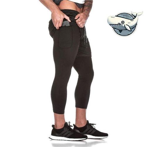 남성용 스판덱스 스포츠 바디빌딩 2중 바지