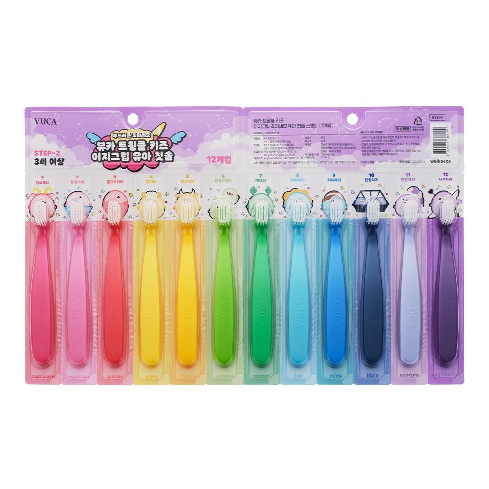뷰카 트윙클 키즈 이지그립 초미세모 유아 칫솔 스텝2 세트, 혼합색상, 12개입, 1세트