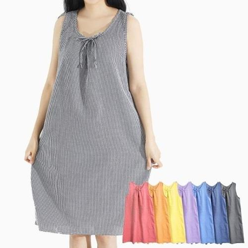 [버블돌]샤베트 민소매 투피스 지지미 나시 체크 홈웨어 파자마 4colors