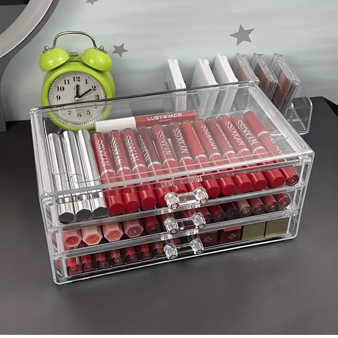 TEMU 1개 투명 아크릴 서랍 정리함 - 컴팩트 3단 수납 박스, 메이크업·보석·사무용 클리어 데스크 오거나이저 - 홈, 기숙사, 작업공간 공간 절약형, 가볍고 휴대하기 쉬운 디자인, 고품질 제작