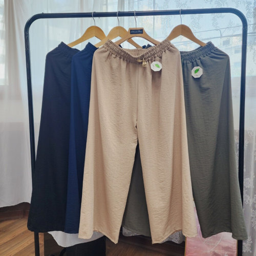1+1 하누리 여성 인견 시원한 살랑거리는 편안한 세미와이드 밴딩 팬츠 바지