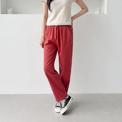 여름 여자 인견 허리밴딩 버튼 일자 바지 SDW-PTS-SSD1002064