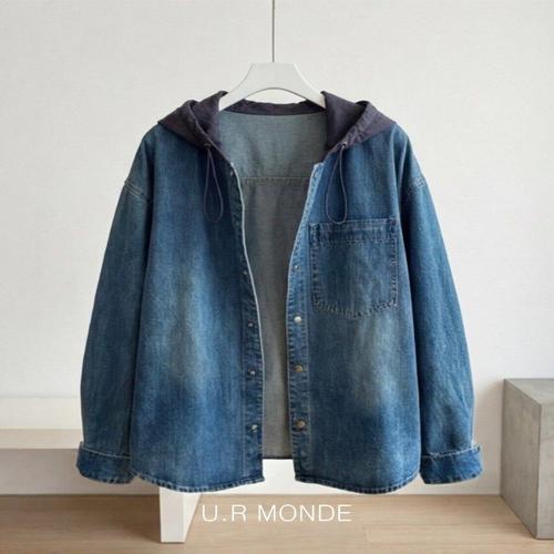 [유아몽드]여성 오버핏 후드 데님 셔츠 자켓 오버사이즈 청남방