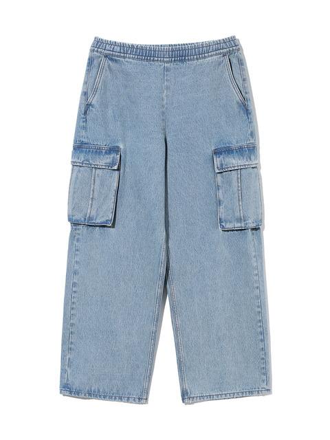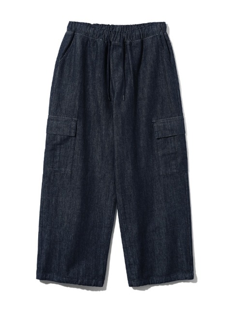 [유씨엘에이] 남녀공용 와이드핏 풀밴딩 카고 데님 팬츠[INDIGO](UB3DH1A_04)