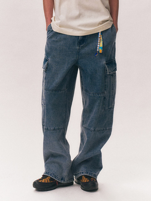 [유씨엘에이] 남녀공용 와이드핏 사이드 밴딩 카고 데님 팬츠[INDIGO](UB3DP4A_04)