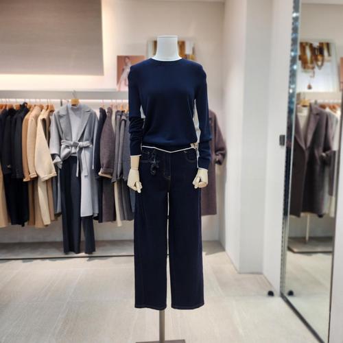 [아이잗바바]장식 포인트 스티치 데님 배기 팬츠 (BS3B0SL481/인디고)