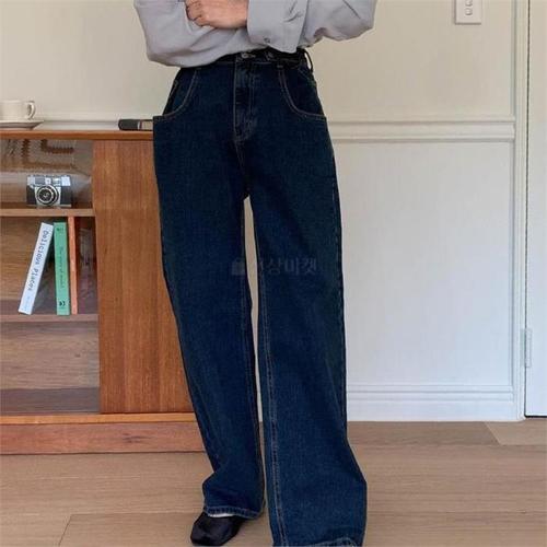 [다잇템]여자 편한 진청바지 넓은 인디고 데님팬츠 (8173430A)