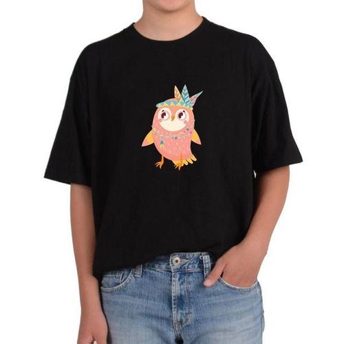 반팔티 올빼미 인디언장식 깃털 프린트티셔츠
