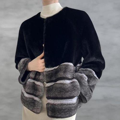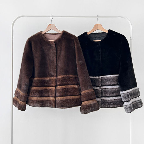 [옷자락]여성 겨울 컬러블록 인조밍크 모임용 털코트 안감가죽 자켓