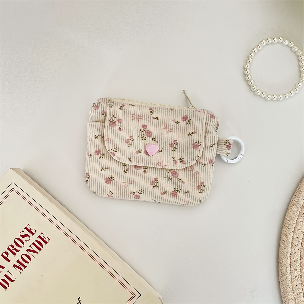 TEMU 코듀로이 소재 수납 파우치, 여성 지갑, 지퍼형 카드 홀더, 은행 카드 ID 파우치, 립스틱 가방