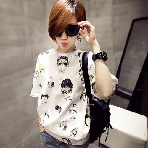 페이스 일러스트 패턴 반팔 티셔츠 BI-A200150