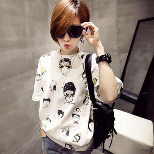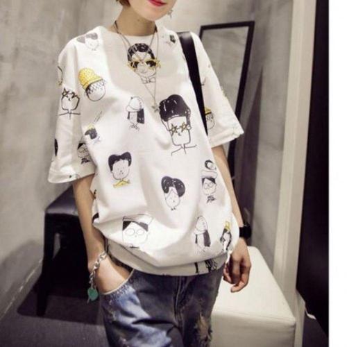 [오너클랜]인기상품 여성용 루즈핏 반팔 티셔츠 드로잉 일러스트 프린트 반팔 상의 [WFLL7MP_260304]