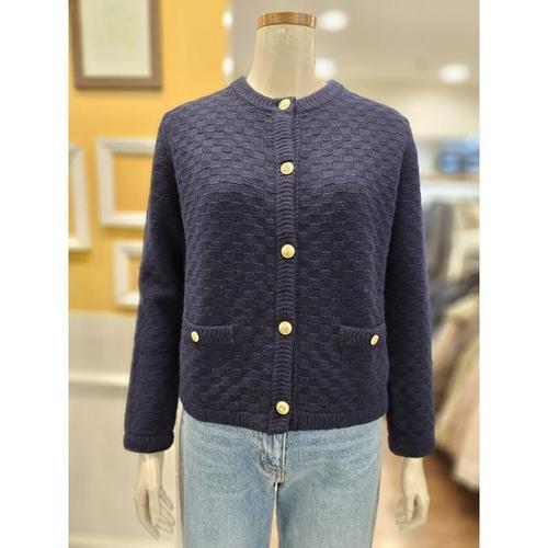 더플로우커머스 여성용 일본감성 자카드 라운드넥 버튼 니트 가디건