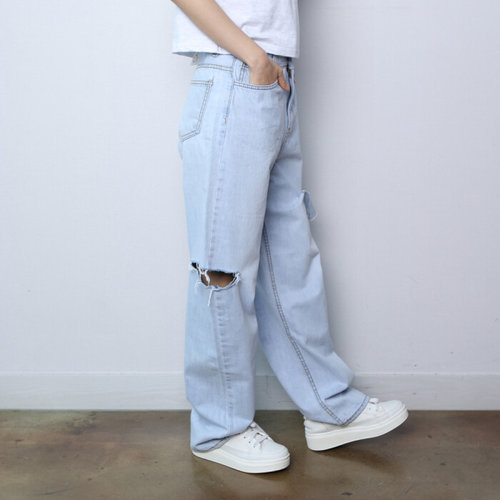 파라노말샵 / ( XL) 연청 데님 컷팅 와이드 팬츠(파라노말샵)
