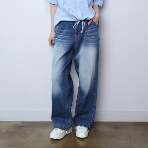 파라노말샵 / (빅사이즈) 데님 밴딩 와이드 팬츠 왕 통바지 (파라노