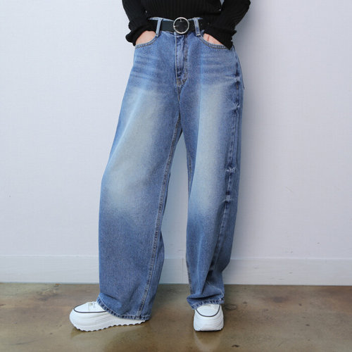 파라노말샵 / ( XL) 난스판 데님 진청 워싱 와이드 팬츠(파라노말샵