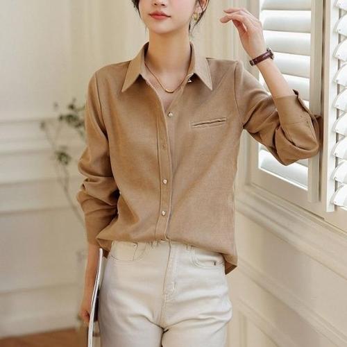 [엄지척]여성 코듀로이 일자핏 데일리 긴팔 카라 셔츠_19645843_667501