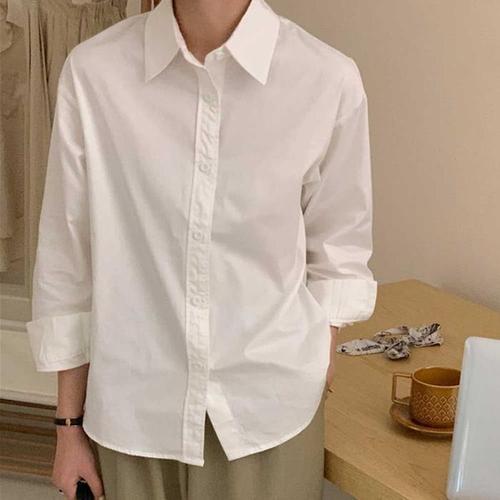 [굿쇼핑몰_의류]2컬러 여성 심플 세련 카라 일자핏 아메카지 셔츠