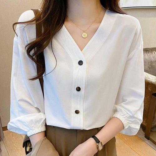 [오너클랜]인기상품 브이넥 코튼 일자핏 노카라 셔츠 블라우스 여름 데일리웨어 [WFLL9O3_260304]