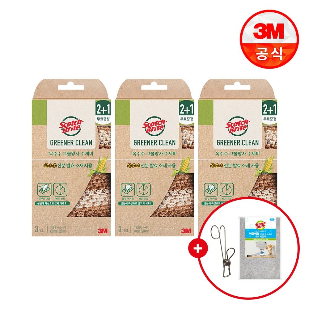 옥수수 그물망사 수세미(총 9입)+스텐 고리집게+버블버블 일회용 롤 수세미 체험팩 사은품