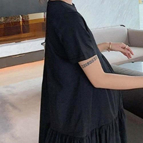 임산부 여름 원피스 캐주얼 반팔 임부복 루즈핏 심플 솔리드 라운드 임부 원피스 CY