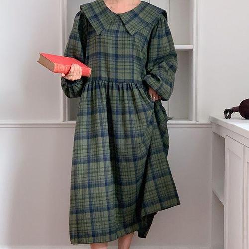 [다잇템]여자 박스 벌룬 임산부 세일러카라 롱원피스
