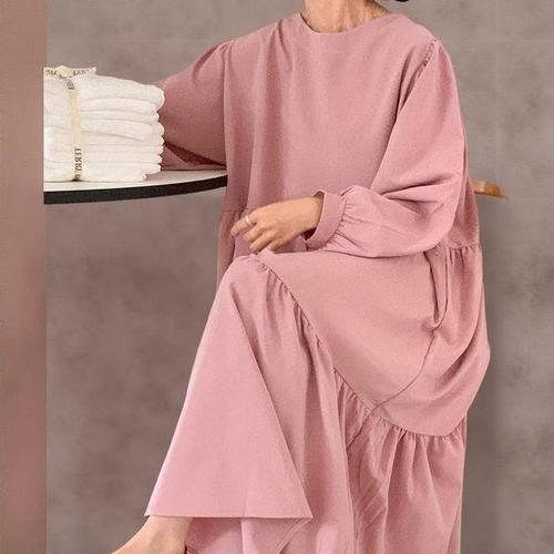 [옷자락]여성 링클 빅사이즈 캉캉 가을 임산부 원피스 분홍 롱드레스