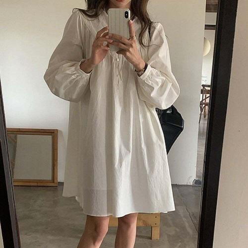 [오너클랜]인기상품 임산부용 셔링 리본 미디 긴팔 원피스 캐주얼 데일리룩 [WFLHJA4_260208]
