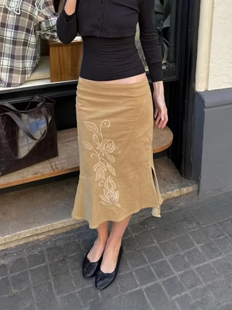 2025년 신상 가을 여성 패션 중간 길이 스커트 레이스 스플라이싱 봄 가을 및 데이트 의상에 적합 트라피자란