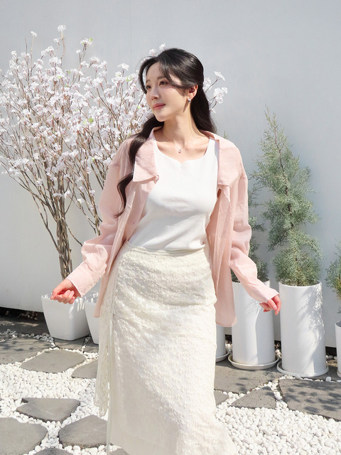 [잇미샤] 잇미샤 플리츠 롱 셔츠