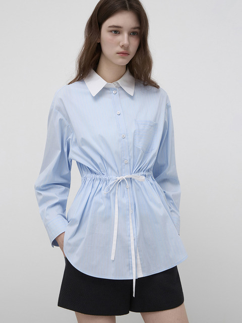 [잇미샤] 잇미샤 배색 카라 스트라이프 스트링 셔츠