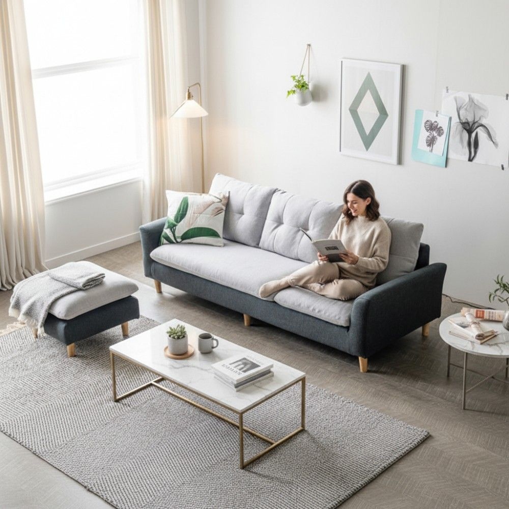 세실리 4인용 풀커버 패브릭 소파 (스툴포함)