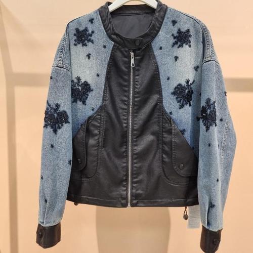 [라티움]Latium HC06 데님 라이더 가죽 배색 비즈 자수 라운드 집업 벌룬청쟈켓 T2613jk09 (45895620)