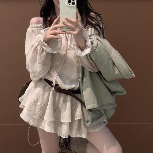 시스루 레이어드 원피스 롱 여성 뷔스티에 자수 레이스 셔링 프릴 스물