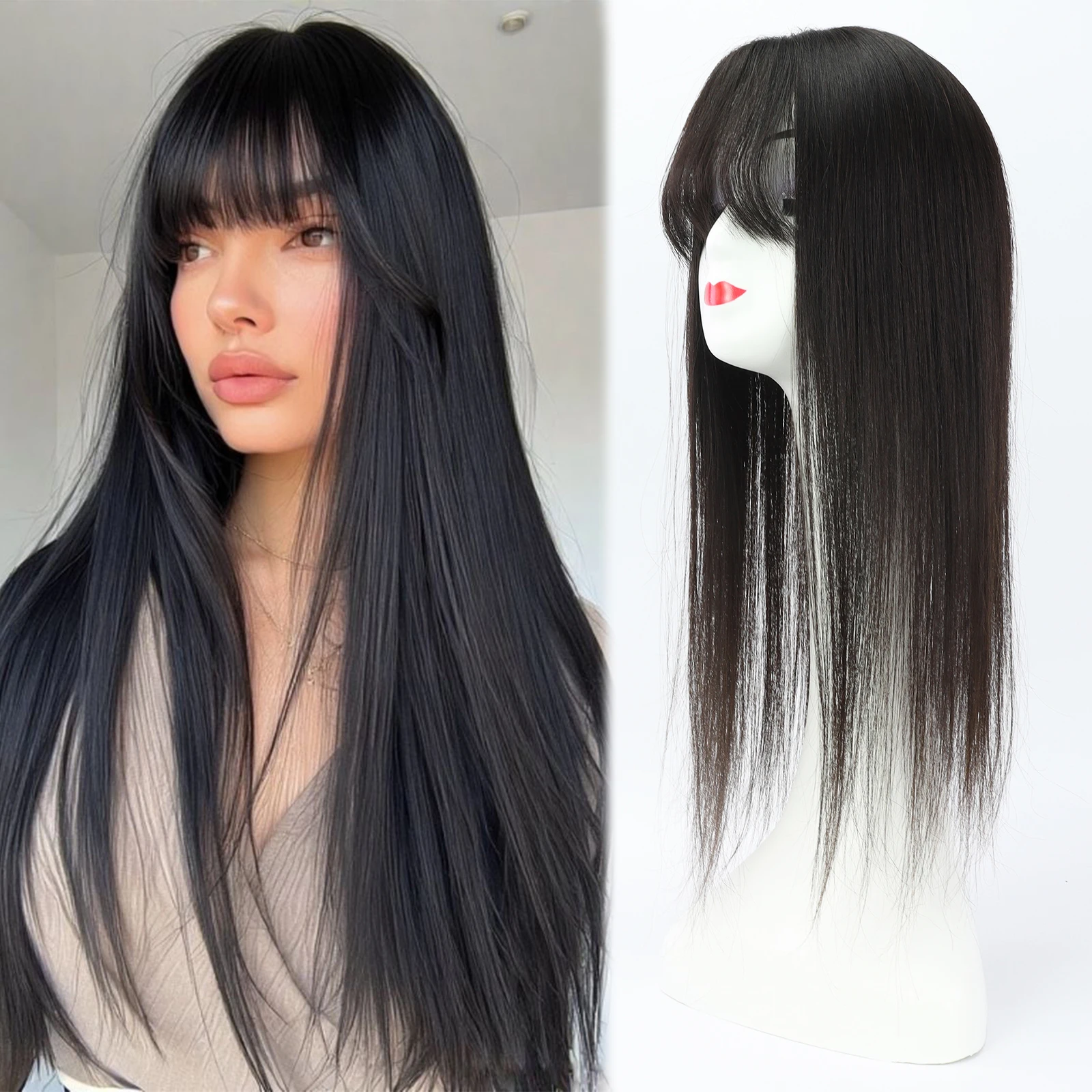 실크 스킨 베이스 토퍼 앞머리 포함 여성용 리얼 레미 인모 헤어피스 10x12cm 실크 탑 헤어피스 클립형 자연스러운 두피 효과