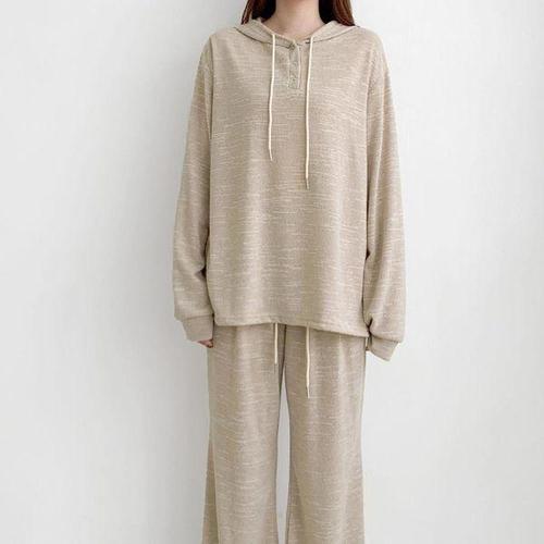 [신상오픈런]여자 가을셋업 버튼 긴팔후드티 루즈 와이드팬츠 세트
