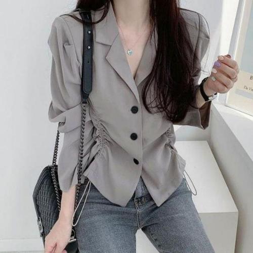 [셀러허브_여성트랜드패션]여자 스타일 카라 자켓 셔링 더블 블라우스 셔츠